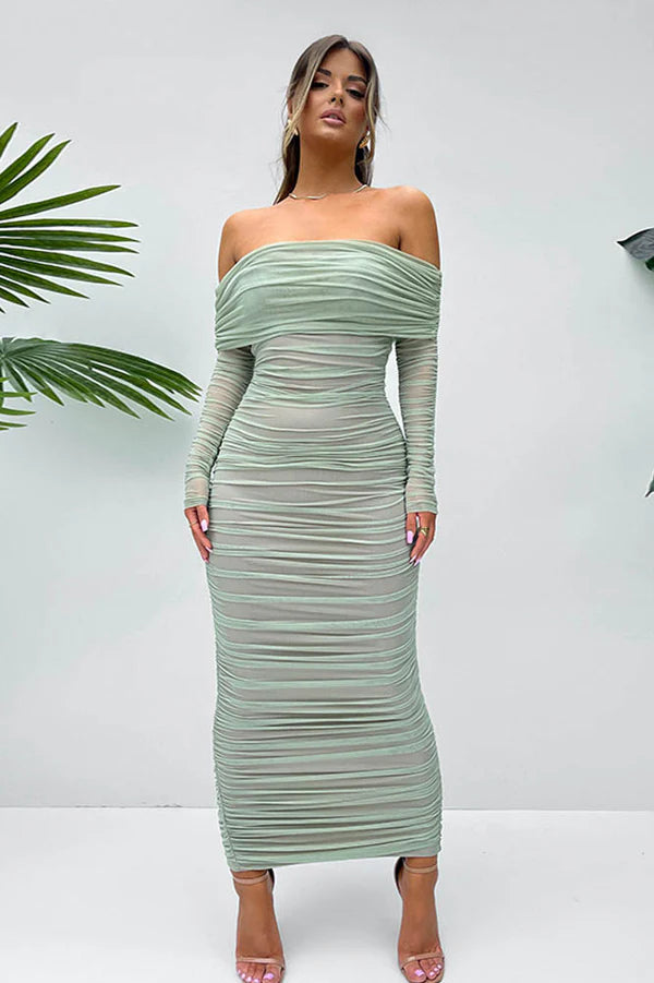Bu omuzları açık vücuda oturan elbiseyle bahar cazibesini kucaklayın. Şeffaf file raglan kollar ve kıvrımlarınızı saran şık, düz renk bir silüetle tasarlanmıştır. Tek omuzlu yaka, bir miktar sofistikelik katarken, şeffaf unsurlar onu karşı konulamaz derecede cesur ama zarif tutmak için yeterli miktarda ortaya çıkarır.
