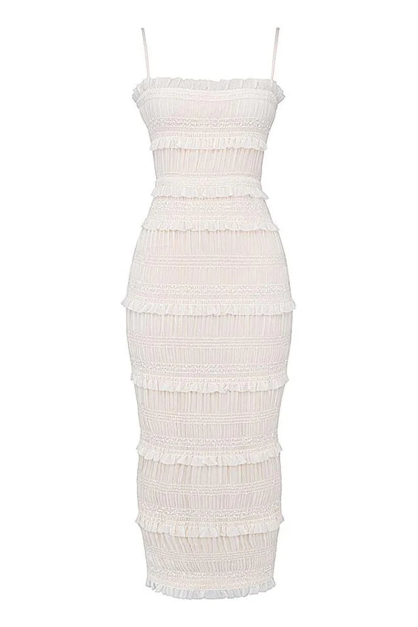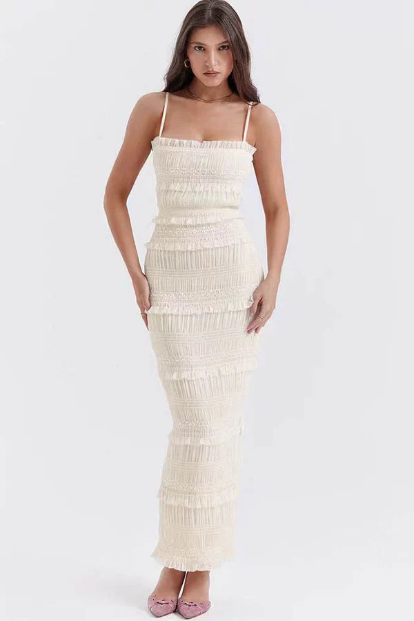 Orkide Plisse Trimli Slip Uzun Elbise