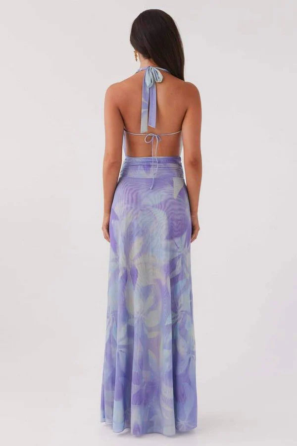 Antonia Baskılı Halter Yaka Uzun Elbise