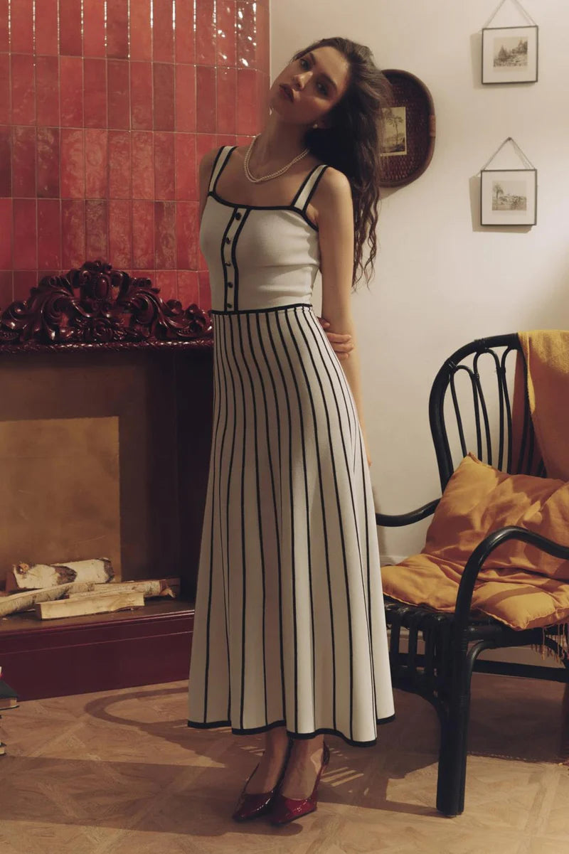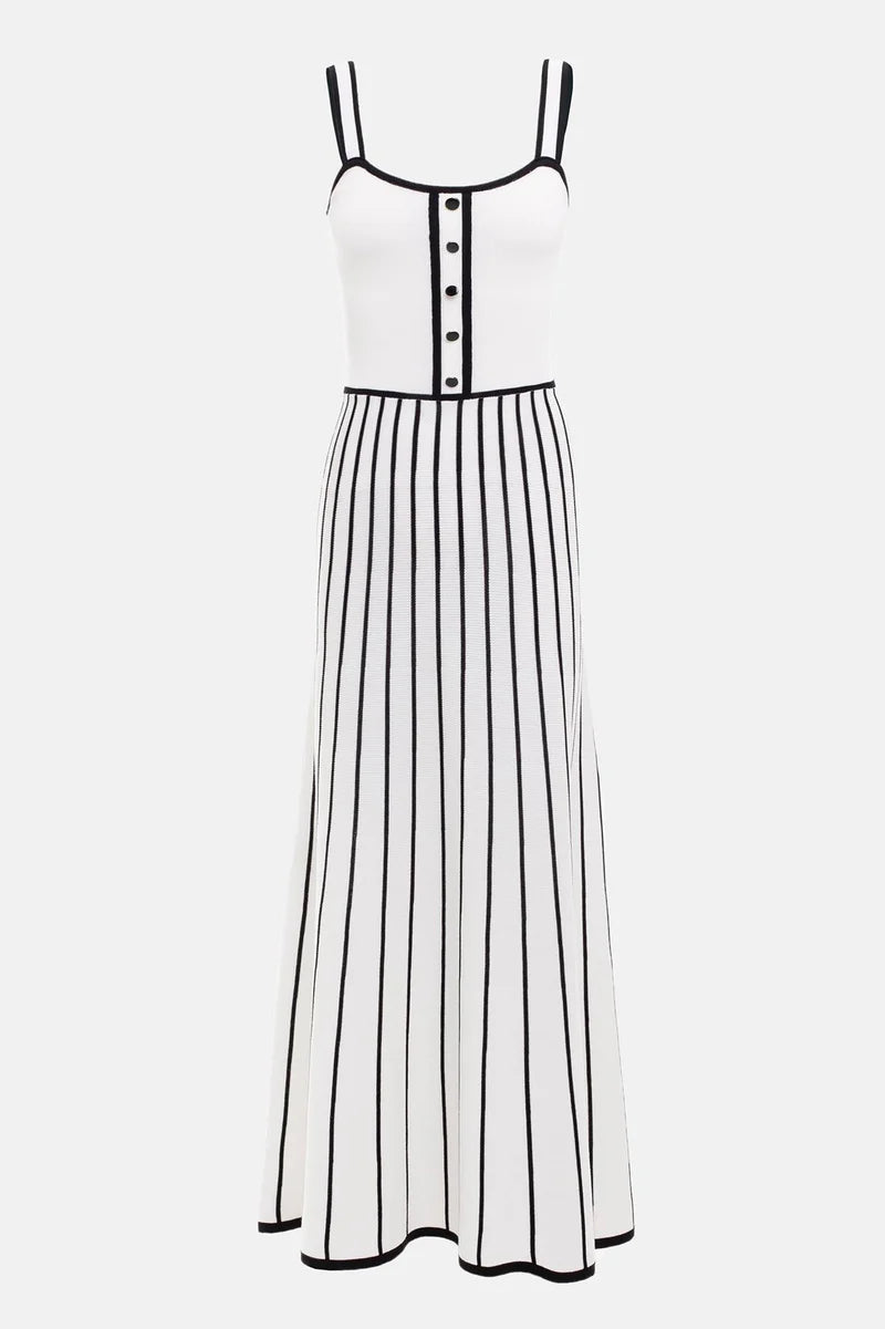 Knit Slip Midi Elbise ile zahmetsiz stili kucaklayın. Yumuşak polyester örgüden üretilen bu rahat kesim elbise, midi uzunluğa zarifçe düşen klasik bir slip tasarıma sahiptir. Orta esnekliği, hoş bir silueti korurken konfor sağlar.