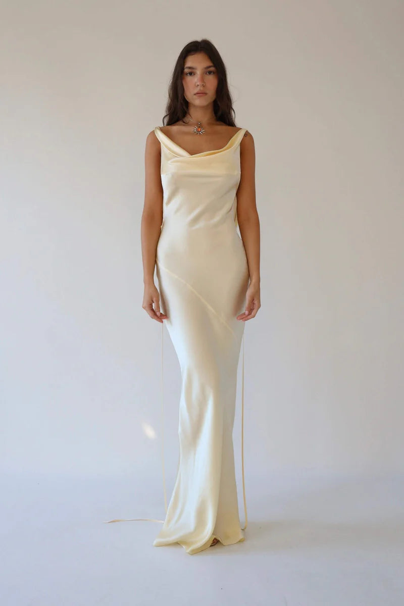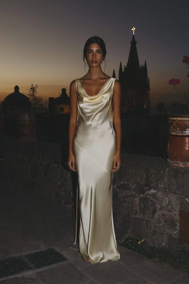 Persis Cowls Sırtı Açık Saten Uzun Elbise